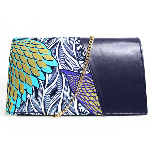 Adaugo Baby Blue Leather Multi-Blue Aso Oke