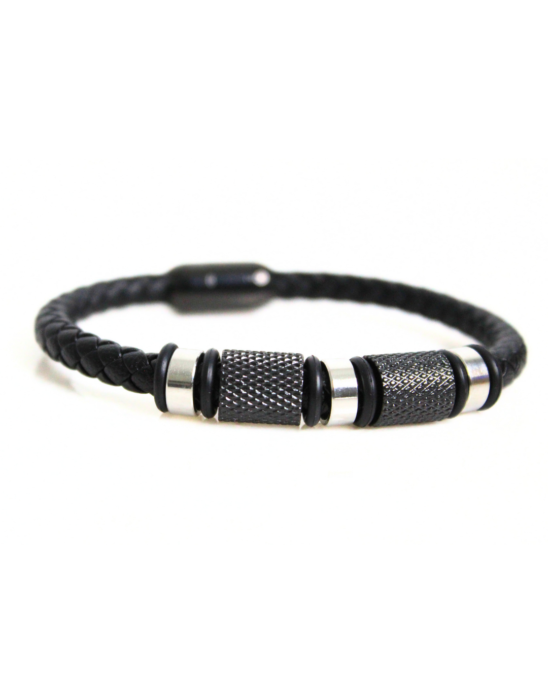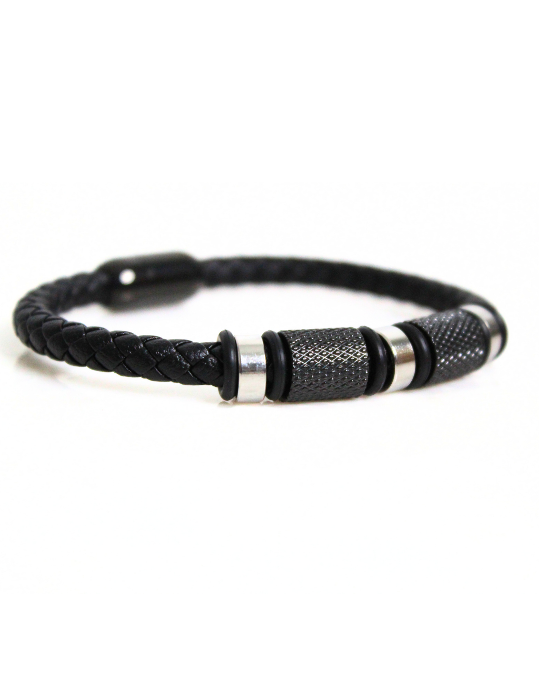 Agura – Braided Leather & Gunmetal Barrel Bracelet